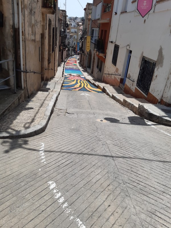 Bé abans celebraven Corpus, en dijous ara sols es fa ballar el ou. I ho celebrem el diumenge amb les catifes de flors, les mes importants son les de Sitges, mes també se fen altres llocs, Blanes. Pel mati comencen a fer-ho, els veïns dels carres i a la tarda vam anar a veure-les estaven dedicades als 50 anys de Focs Artificials de Blanes que amb això de la pandèmia no se han fet en dos anys.