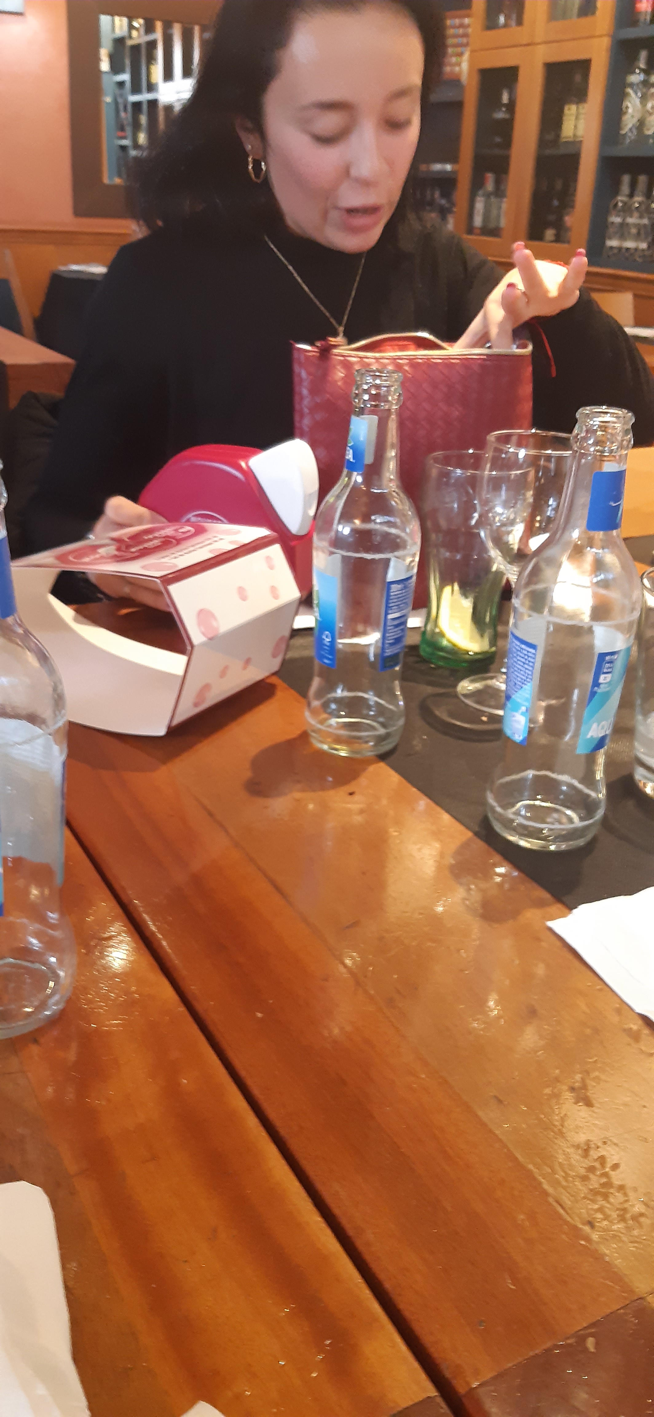 El dilluns vam anar a La Esquinita te espero, per celebra el Nadal amb la gent del gimnàs, els entrepans mini, eren vestits de bany, la monitora que va arribar tard per culpa del tren ja que no viu a Blanes, va quedar molt contenta.
