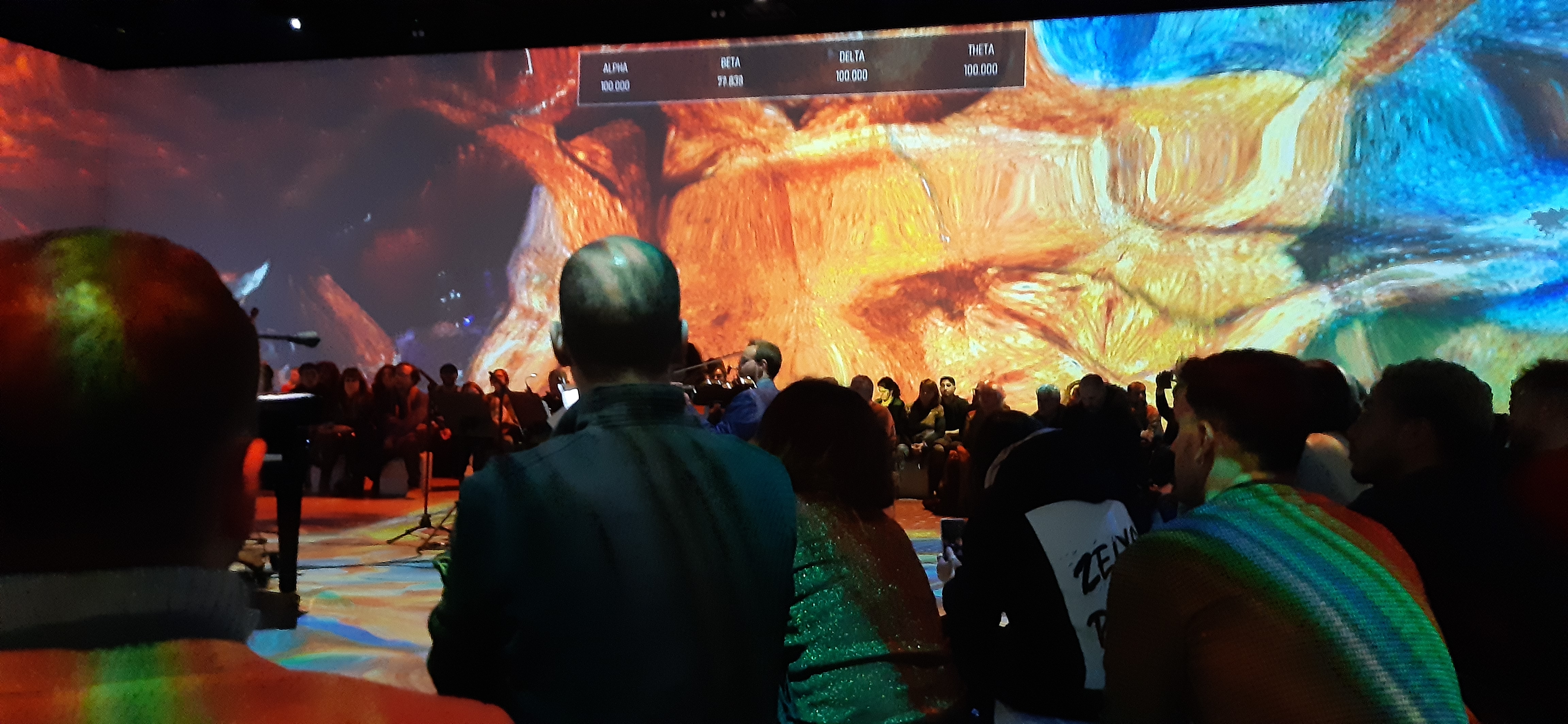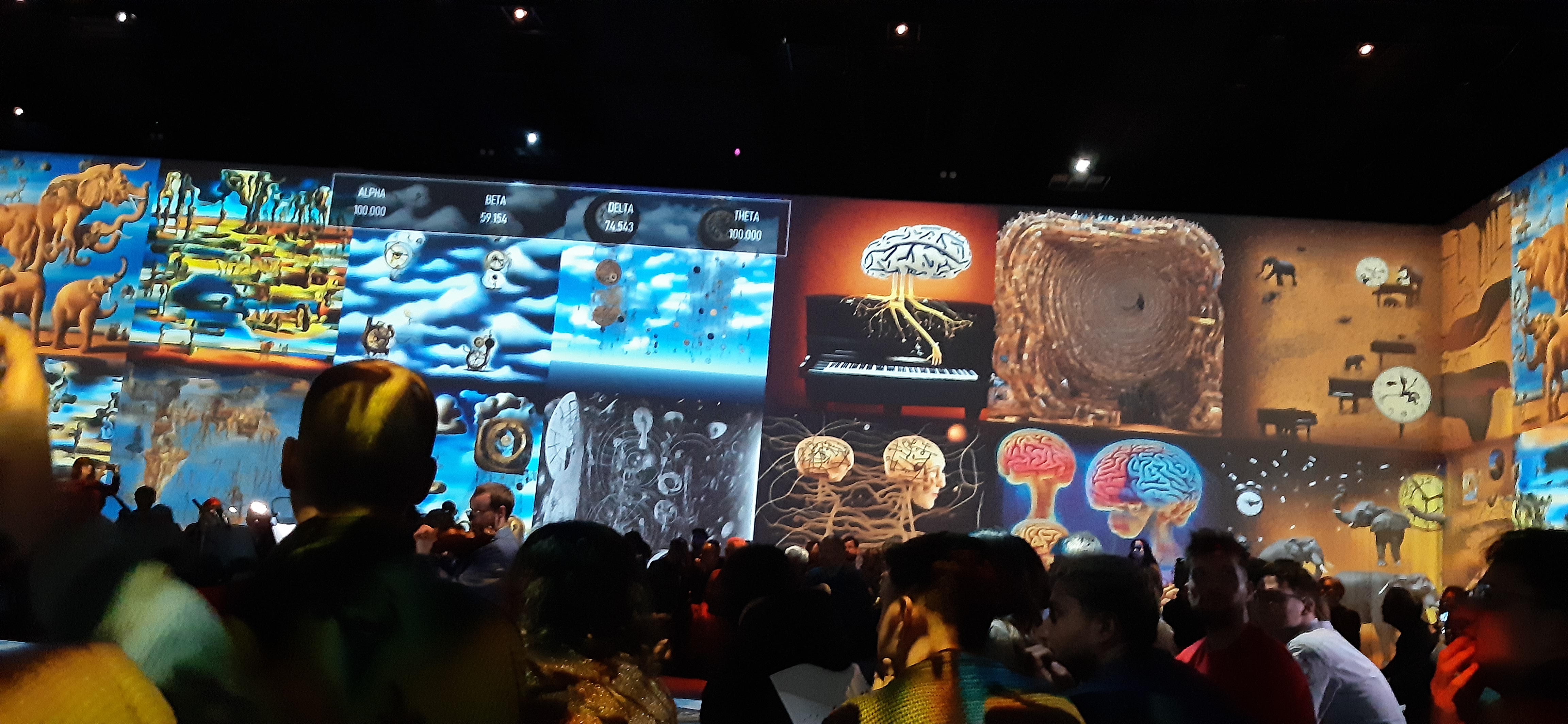 En el record de l’exposició al Ideal de Dalí, vam anar molt il•lusionat a veure La Maquina de Pensar, un concert de immersió, jo crec que marejava una mica, això si vam veure les ondes que generava el pianista en seu cervell, Alfa, Beta, gamma i Delta, mes al no saber lo que signifiquen sembla, un cardiograma.