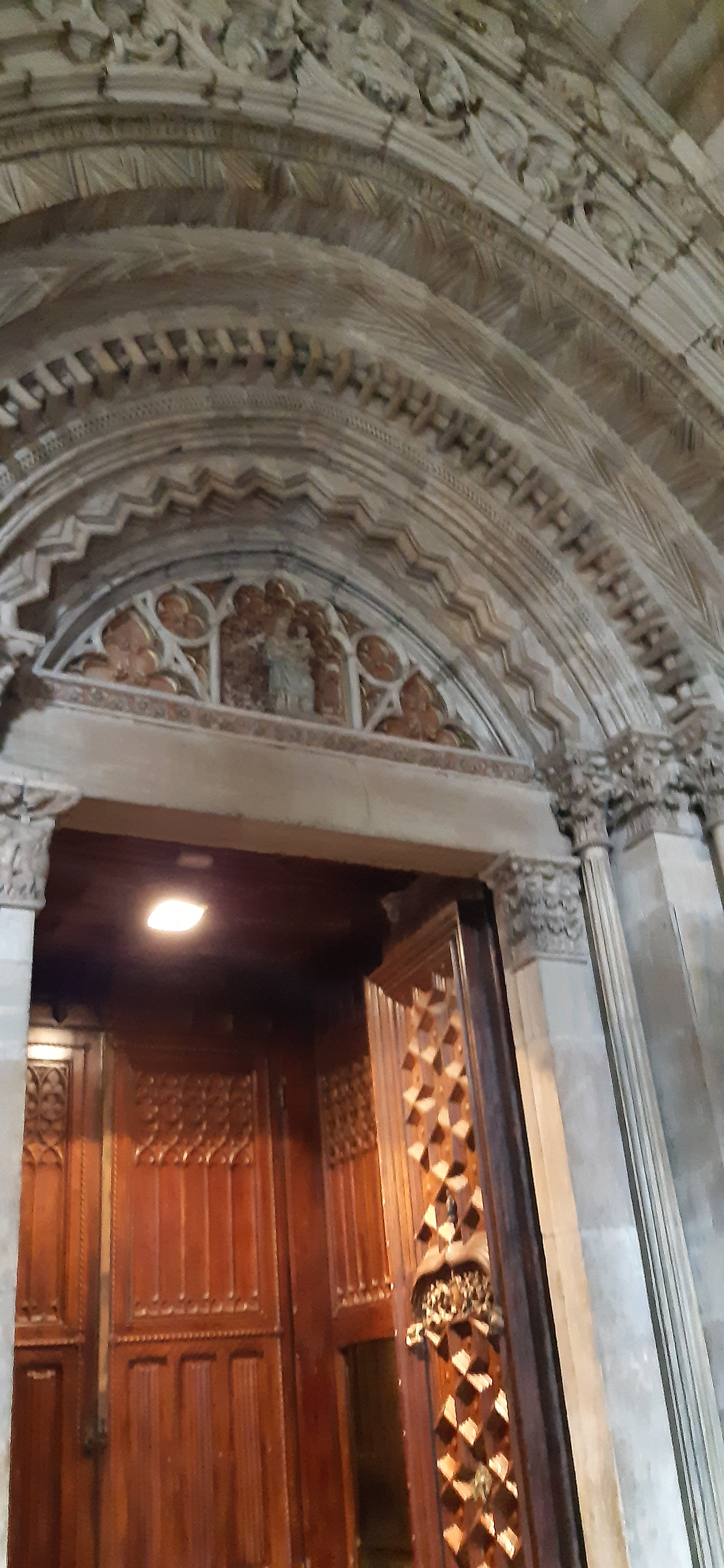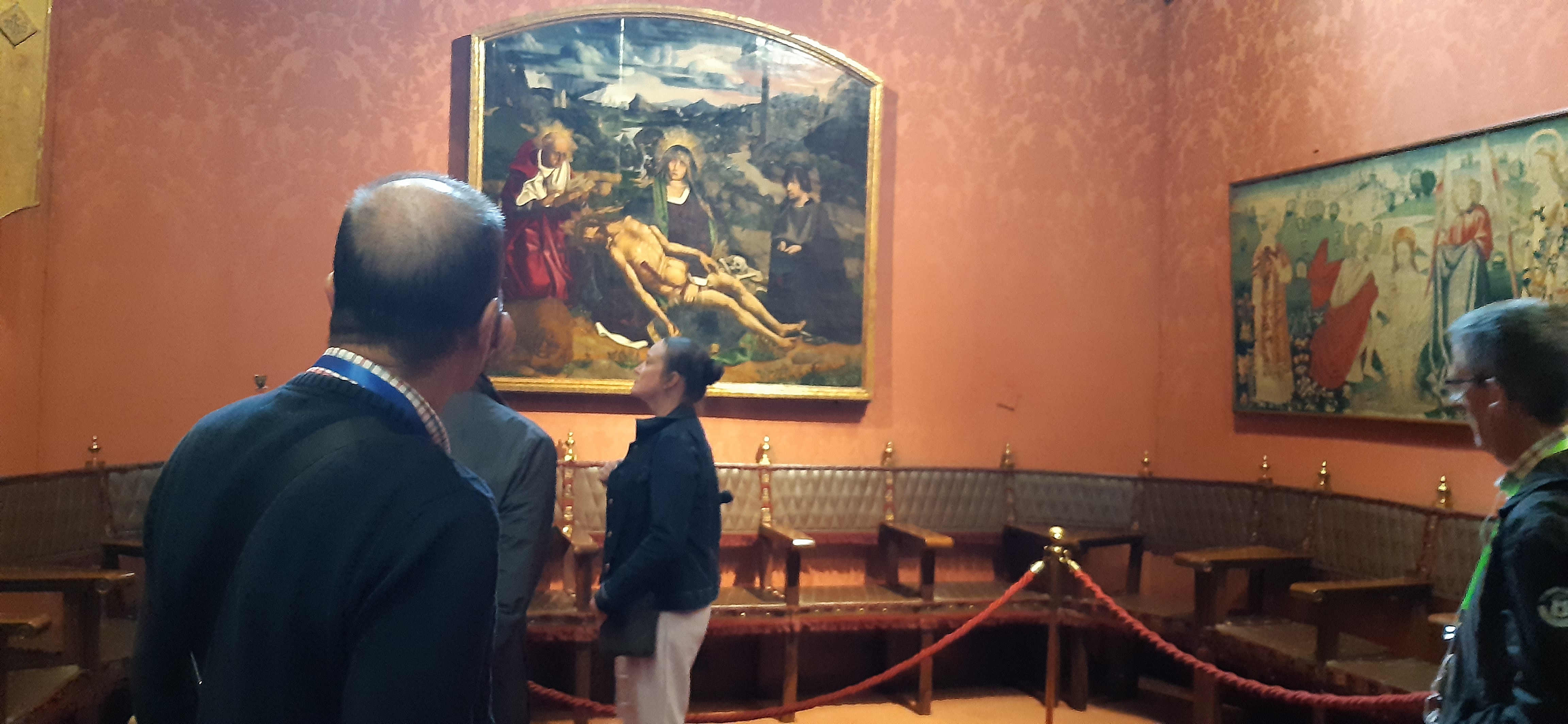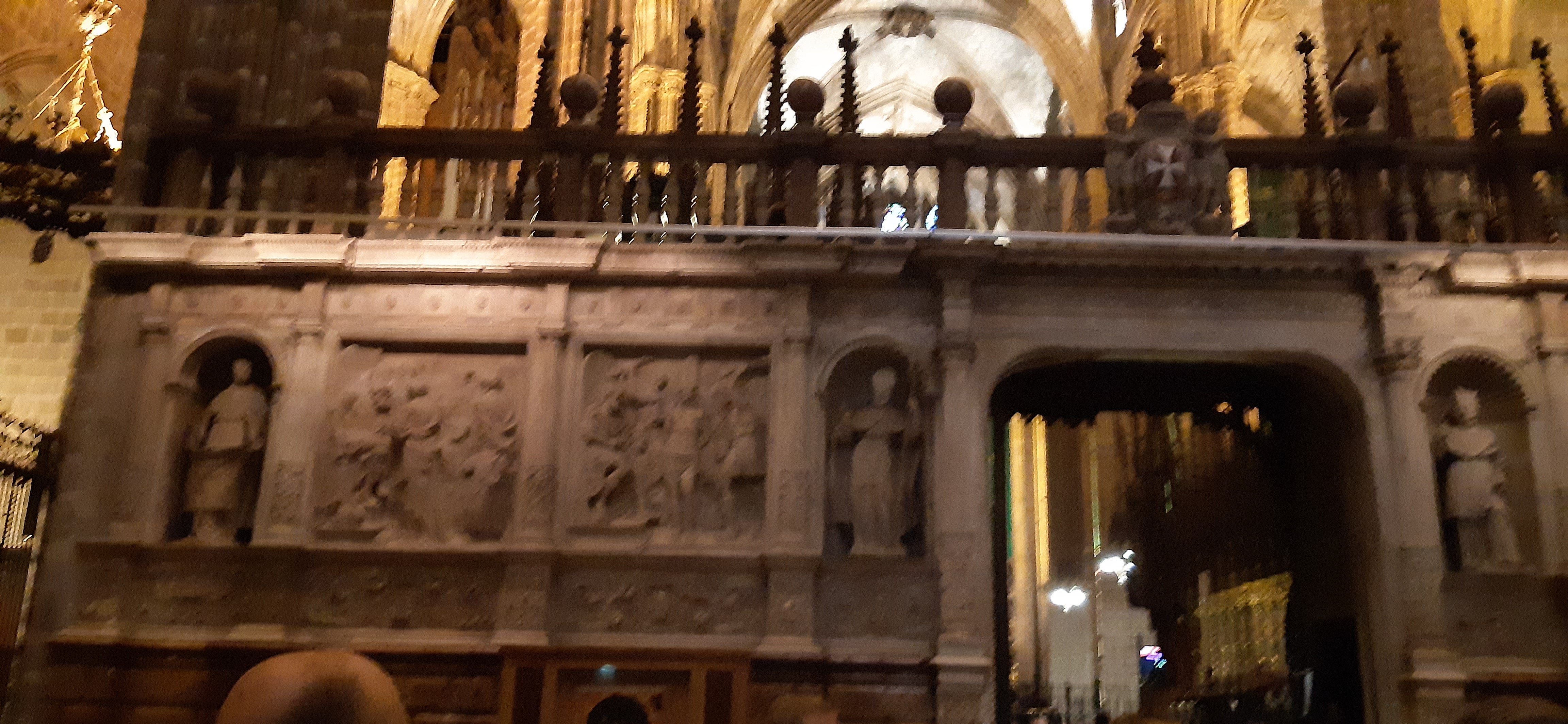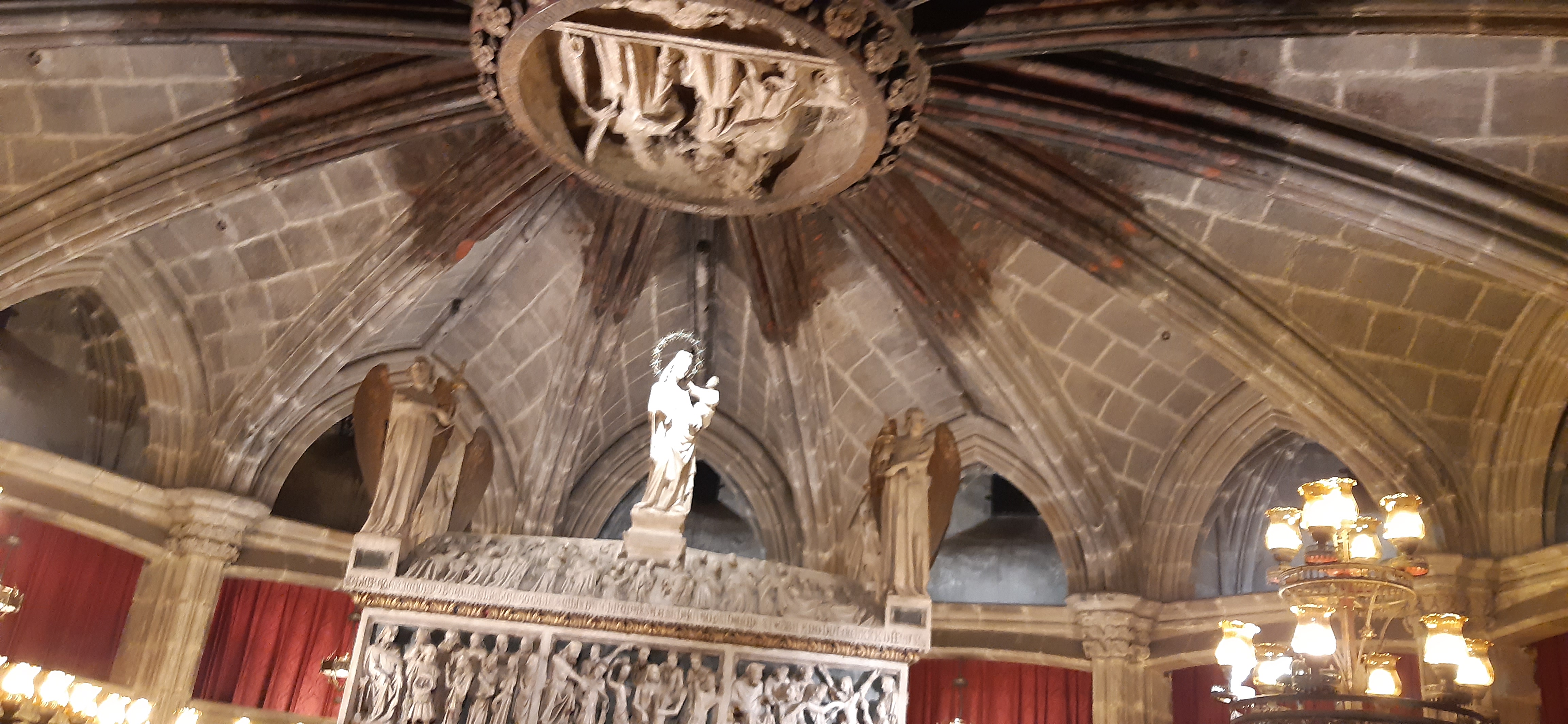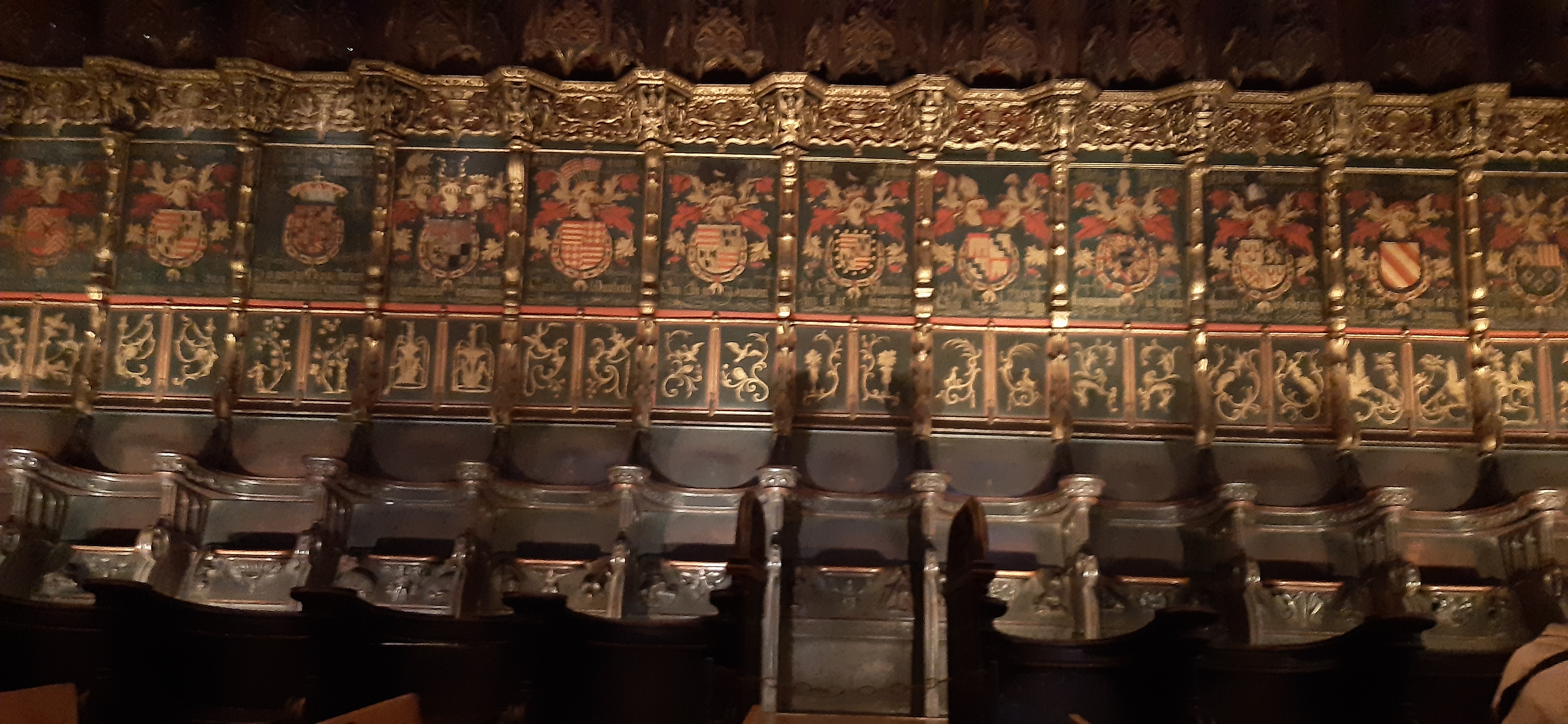 També baixem a Barcelona, plovent, visita a la Catedral, La tercera, una aprofiten a altre, por això, la façana es estan moderna 1900, on batejaven els primer cristians per immersió es pot veure en el museu de historia que les ruïnes queden a sota, de on esta ara Crist de Lepa nt, ara molt blanc i amb molta polèmica, al costat de Sant Marc, patró dels sabates, els escuts parlenc, vam pogué entrar a las misericòrdies, totes en escuts de grans famílies Europees, de 1519, que es tenien que reunir per combatre el poder Turc.