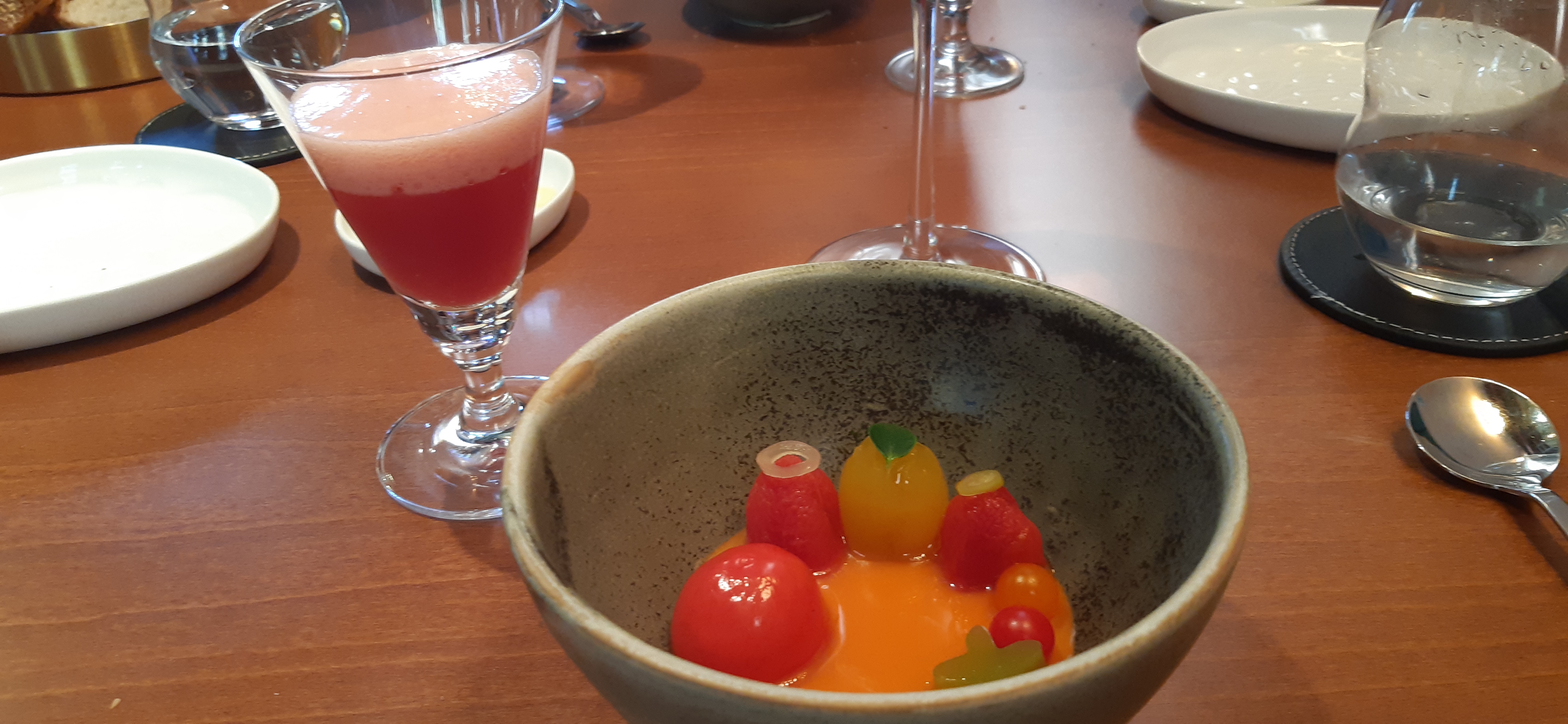 Arribem al Parador, fantàstica l’atenció, habitació bona tot molt ben cuidat i desinfectat, copa de benvinguda, sopem allí i ens sorprèn com fan el pa amb tomàquet, et porten el tomàquet en un gotet, sempre s’ha d’aprendre.