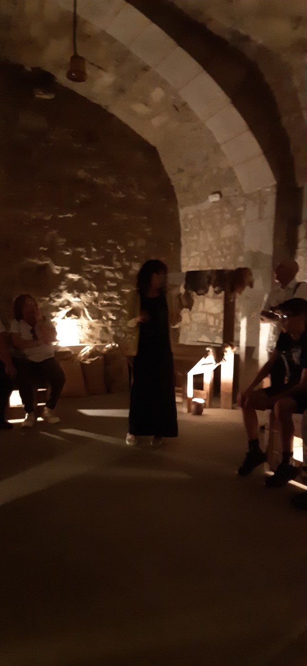 Entren en una casa davant on preparaven el concert, era una sala d’exposicions, colors pastel moderna, sense temps vam anar al castell, la vista ja havia començat baixem. A la bodega on es comentar i en fan viure l’època feudal, com pagaven els tributs, com els ofegaven, com de lligats estaven a la terra, eren esclaus, pagaven 5 quinters, quan a Vic eren 4.