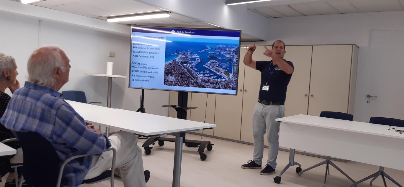 Un noi, amb samarreta d’escola d’Europa ens va fer, passar per tot el centre comercial, ens conduïa a l’aula, que amb diapositives, vam veure el món del port de Barcelona, quants calés mou, com vam guanyar terreny pel port movent el riu Llobregat, ara no ho podrien fer, com està tot coordinat, amb noms anglesos, la part dels cotxes, que el descarreguen conduïts per homes, això del km 0 res de res. La part de les mercaderies d’Amazon, Inditex, per donar el màxim servei en menys temps. La zona dels creuers, els llocs de treball que suposen, i l’avantatge que està en Barcelona, pels turistes és molt còmode. Els iots de luxe no estan per casualitat, sinó per ser especialistes en reparació i conservació.