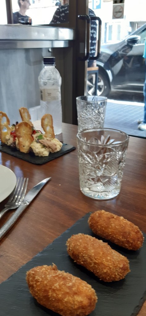 Aquest a vegada, el meu nebot ens vaconvidar a un Gastro-23, estava en carrers que coneixia molt bé de petita, i primera sorpresa el canvi tot asfalta’t, entre il·lusió i sorpresa anava caminant, i traient la llegua, abans corria, i ara amb la llengua a fora vaig arribar, el meu nebot, a l’ombra, el meu company més sorprès, pel metro que arribaves tan lluny, i les diverses alçades en poc espai, i allí El bar, fantàstic acollidor i les tapes boníssimes, esplèndides, i tornarem.