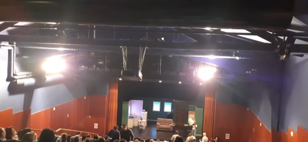 A la tarda hem anat al teatre de Blanes. A Blanes ja molt teixir associatiu, que col·laborar per les causes. Aquesta vegada era per L’Ermita de Santa Bàrbara.